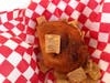 One of the eye-catching fair offerings this year is deep-fried cereal. My fellow test taster, Candace, tried the deep-fried Trix and I had the Cinnamon Toast Crunch version. Now, when I was trying the deep-fried Cinnamon Toast Crunch, the pool of grease in the bottom of the basket made me clutch my heart a little. The doughy ball of greasy cereal wasn't bad, but it definitely isn't something I'd go out of my way to buy. Candace called the Trix edition "disappointing."