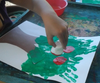 Our art project this week involved the children making an apple tree. The leaves of the tree were made with their handprints and the apples were stamped with the flat side of a marshmallow.