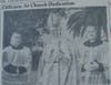 At the dedication, 40 priests and 45 uns joined Bishop Buddy, Catholic War Veterans, Spanish Civil War Veterans (Whoa! We had Lincoln Brigade members here, too?) and the Boy and Girl Scouts to raise the flags amid song and prayer. In a preview of the remarkable music programs to come at St. John's, a children's choir sang and presented baskets of flowers.