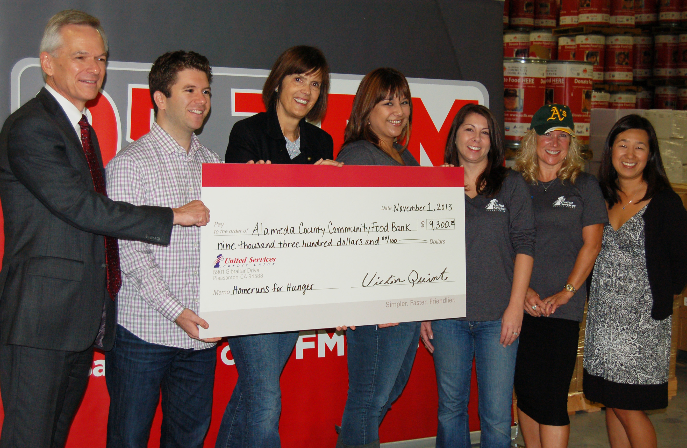 95.7 The GAME (KGMZ-FM), The Bay Area’s New Sound for Sports and 1st United Services Credit Union (1st USCU) partnered once again for the Oakland A’s 2013 “Homeruns for Hunger” campaign. 1st USCU donated $9,300 to the Alameda County Community Food Bank as part of this campaign.