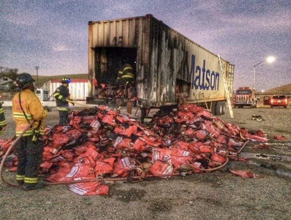 Fire Damages Big-Rig Full of Clothes and Shopping Bags