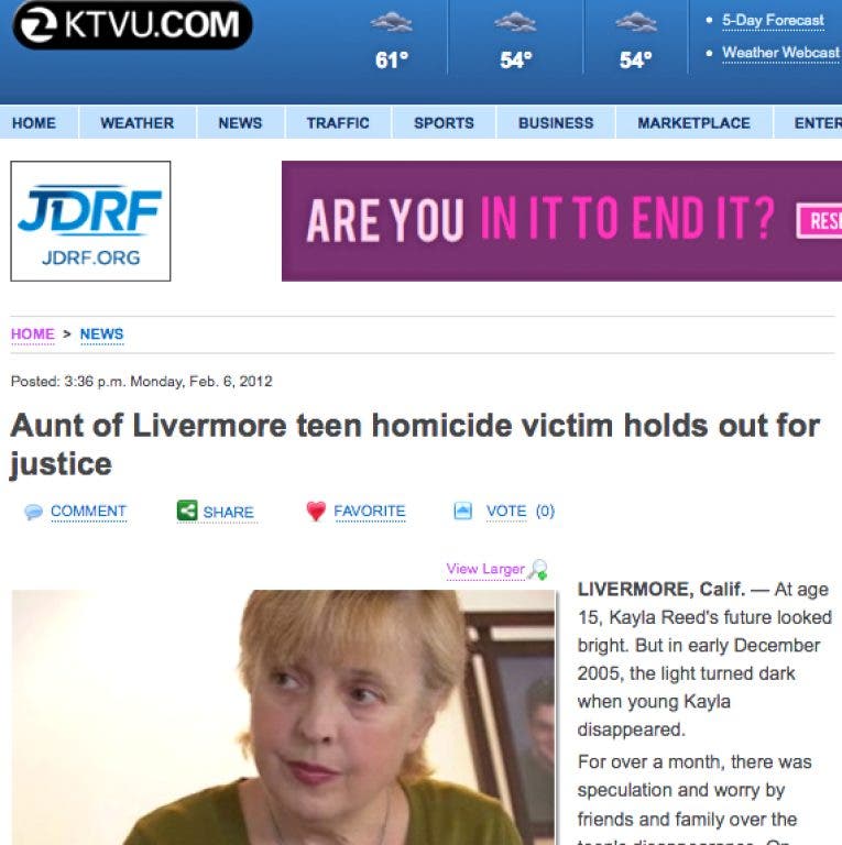 KTVU Ch. 2 News on Monday night aired an interview with an aunt of Livermore teen Kayla Reed.