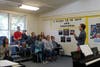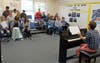 The LHS Chamber Choir, an advanced choir made up of 16 students in grades 10-12, seems up to the challenge. The pace of the class stays at a steady clip from the bell, with students quickly learning their parts with a look at their music and direction from Filice, who encourages them to “guess loud,” as they sing off the page and find the right sound. Their fast-approaching performance date does not leave much room for approaching the music timidly, and the choir students practice with confidence. Filice accompanies the students on piano, stops to pick apart a particular section of music, provides some instruction and adjustments, and moves on. It feels fast, but the class is in sync and well-practiced, expertly picking up the notes and the timing.