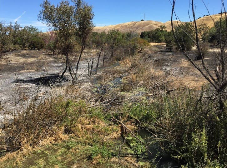 The fire was reported in the 4900 block of Arroyo Road at about 1:26 p.m. last Thursday. The blaze was less than a mile from the Wente Vineyards and quickly spread to the nearby Sycamore Grove Park, according to Livermore Area Recreation and Park District officials. No one was injured during the fire.