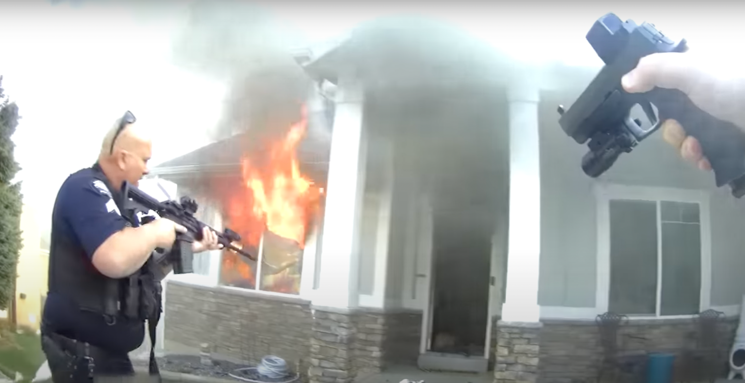 When North Ogden Police Department officers arrived, Roberts immediately began to shoot at them, according to the police department. In the video, Roberts is seen running out of the house before he was shot and killed by police as smoke from the fire poured out the front door of the home.