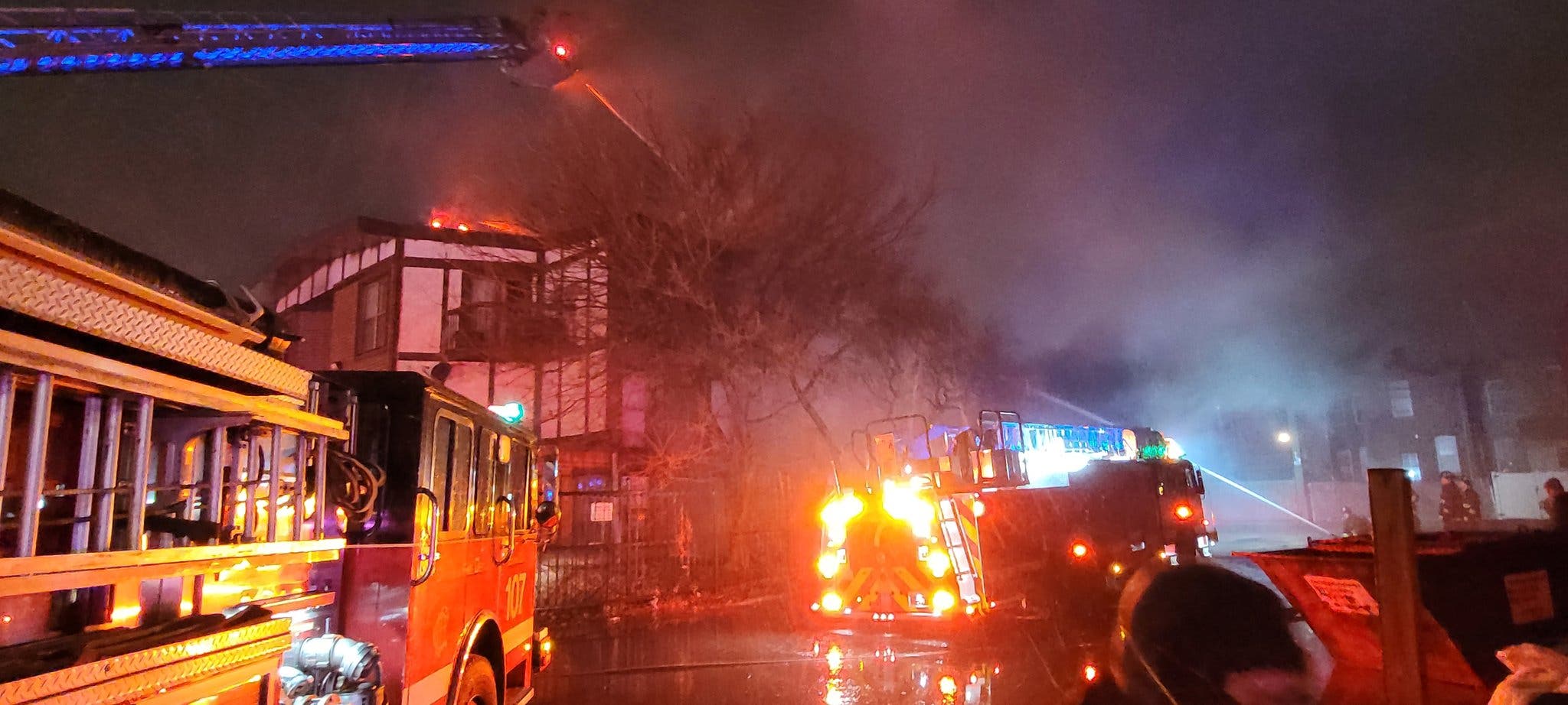 CHICAGO, IL — Two people were injured in a fire that badly damaged a building Saturday night in Chicago's East Garfield Park neighborhood. The blaze sent smoke billowing into the air as flames shot from the roof, according to reports.