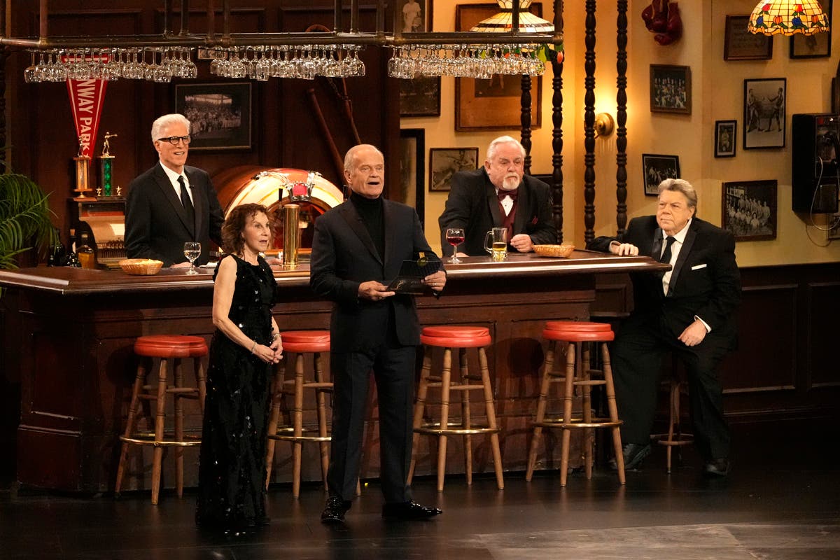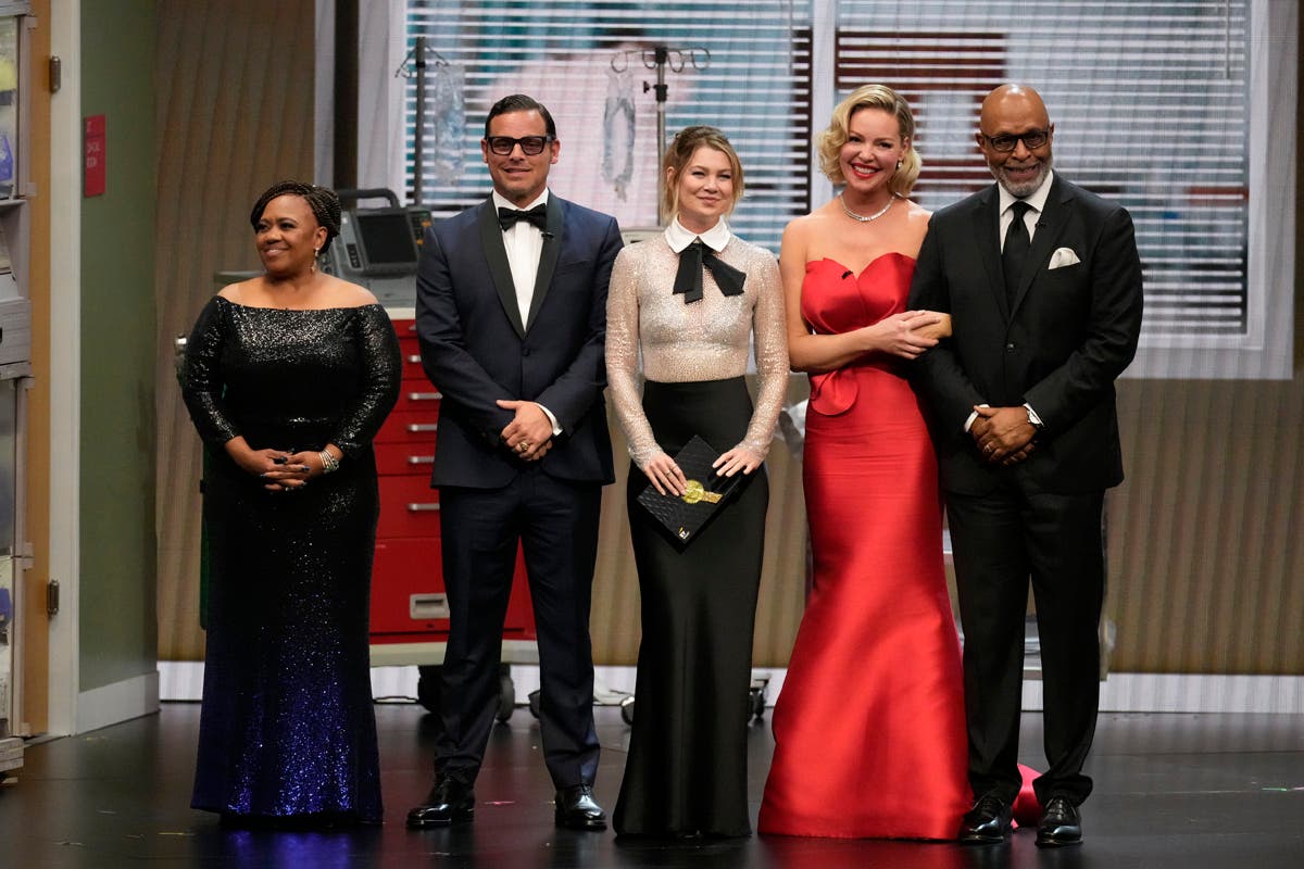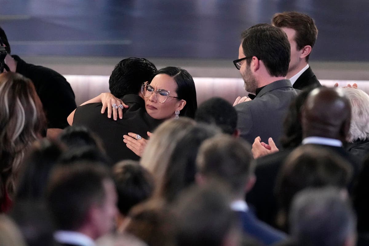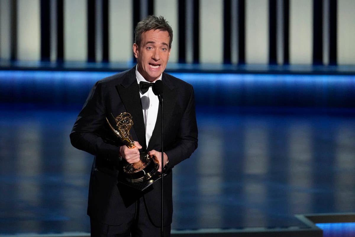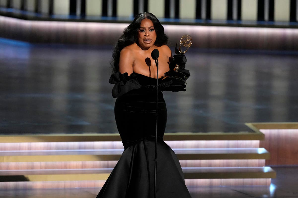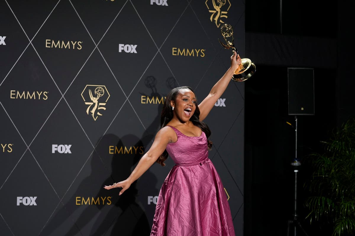 Christina Applegate, left, presents the award for outstanding supporting actress in a comedy series during the 75th Primetime Emmy Awards on Monday, Jan. 15, 2024, at the Peacock Theater in Los Angeles. (AP Photo/Chris Pizzello)Host Anthony Anderson appears in a reenactment of a scene from "The Sopranos" during the 75th Primetime Emmy Awards on Monday, Jan. 15, 2024, at the Peacock Theater in Los Angeles. (AP Photo/Chris Pizzello)Jennifer Coolidge accepts the award for outstanding supporting actress in a drama series for "The White Lotus" during the 75th Primetime Emmy Awards on Monday, Jan. 15, 2024, at the Peacock Theater in Los Angeles. (AP Photo/Chris Pizzello)Matthew Macfadyen accepts the award for outstanding supporting actor in a drama series for "Succession" during the 75th Primetime Emmy Awards on Monday, Jan. 15, 2024, at the Peacock Theater in Los Angeles. (AP Photo/Chris Pizzello)Niecy Nash-Betts accepts the award for outstanding supporting actress in a limited or anthology series or movie for "Dahmer – Monster: The Jeffrey Dahmer Story" during the 75th Primetime Emmy Awards on Monday, Jan. 15, 2024, at the Peacock Theater in Los Angeles. (AP Photo/Chris Pizzello)Rhea Perlman, from left, Kelsey Grammar, Ted Danson, John Ratzenberger, George Wendt present the award for outstanding writing for a comedy series during the 75th Primetime Emmy Awards on Monday, Jan. 15, 2024, at the Peacock Theater in Los Angeles. (AP Photo/Chris Pizzello)Charlie Day, from left, Glenn Howerton, Rob McElhenney, Kaitlin Olson, and Danny DeVito present the award for outstanding variety talk series during the 75th Primetime Emmy Awards on Monday, Jan. 15, 2024, at the Peacock Theater in Los Angeles. (AP Photo/Chris Pizzello)Ayo Edebiri, winner of the award for outstanding supporting actress in a comedy series for "The Bear," watches the show from inside the press room during the 75th Primetime Emmy Awards on Monday, Jan. 15, 2024, at the Peacock Theater in Los Angeles. (AP Photo/Ashley Landis)Chandra Wilson, from left, Justin Chambers, Ellen Pompeo, Katherine Heigl, and James Pickens Jr., present the award for outstanding supporting actor in a limited anthology series or movie during the 75th Primetime Emmy Awards on Monday, Jan. 15, 2024, at the Peacock Theater in Los Angeles. (AP Photo/Chris Pizzello)Christina Applegate introduces Carol Burnett during the 75th Primetime Emmy Awards on Monday, Jan. 15, 2024, at the Peacock Theater in Los Angeles. (AP Photo/Chris Pizzello)Tina Fey, left, and Amy Poehler present the award for outstanding variety special (live) during the 75th Primetime Emmy Awards on Monday, Jan. 15, 2024, at the Peacock Theater in Los Angeles. (AP Photo/Chris Pizzello)Ali Wong, left, embraces Steven Yeun after he wins the award for outstanding lead actor in a limited or anthology series or movie for "Beef" during the 75th Primetime Emmy Awards on Monday, Jan. 15, 2024, at the Peacock Theater in Los Angeles. (AP Photo/Chris Pizzello)Steven Yeun, winner of the awards for outstanding lead actor in a limited or anthology series or movie and outstanding limited or anthology series for "Beef," poses in the press room during the 75th Primetime Emmy Awards on Monday, Jan. 15, 2024, at the Peacock Theater in Los Angeles. (AP Photo/Ashley Landis)Ali Wong, winner of the awards for outstanding lead actress in a limited or anthology series or movie and outstanding limited or anthology series for "Beef," poses in the press room during the 75th Primetime Emmy Awards on Monday, Jan. 15, 2024, at the Peacock Theater in Los Angeles. (AP Photo/Ashley Landis)Jodie Foster presents the award for outstanding lead actress in a drama series to Sarah Snook for "Succession" during the 75th Primetime Emmy Awards on Monday, Jan. 15, 2024, at the Peacock Theater in Los Angeles. (AP Photo/Chris Pizzello)Rob Reiner, left, and Sally Struthers introducing the In Memoriam segment with a tribute to Norman Lear during the 75th Primetime Emmy Awards on Monday, Jan. 15, 2024, at the Peacock Theater in Los Angeles. (AP Photo/Chris Pizzello)Young Mazino, from left, Maria Bello, Steven Yeun, Ali Wong, and Joseph Lee, winners of the award for outstanding limited or anthology series for "Beef," pose in the press room during the 75th Primetime Emmy Awards on Monday, Jan. 15, 2024, at the Peacock Theater in Los Angeles. (AP Photo/Ashley Landis)Matty Matheson, center, and Ebon Moss-Bachrach kiss as "The Bear" wins the award for outstanding comedy series during the 75th Primetime Emmy Awards on Monday, Jan. 15, 2024, at the Peacock Theater in Los Angeles. (AP Photo/Chris Pizzello)Natasha Lyonne, left, embraces Ayo Edebiri as she presents the award for outstanding comedy series for "The Bear" during the 75th Primetime Emmy Awards on Monday, Jan. 15, 2024, at the Peacock Theater in Los Angeles. (AP Photo/Chris Pizzello)Greg Germann, from left, Calista Flockhart, Gil Bellows, and Peter MacNicol perform during the 75th Primetime Emmy Awards on Monday, Jan. 15, 2024, at the Peacock Theater in Los Angeles. (AP Photo/Chris Pizzello)Doris Bowman, left, and Anthony Anderson arrive at the 75th Primetime Emmy Awards on Monday, Jan. 15, 2024, at the Peacock Theatre in Los Angeles. (Photo by Richard Shotwell/Invision/AP)Quinta Brunson, winner of the award for outstanding lead actress in a comedy series for "Abbott Elementary," poses in the press room during the 75th Primetime Emmy Awards on Monday, Jan. 15, 2024, at the Peacock Theater in Los Angeles. (AP Photo/Ashley Landis)Host Anthony Anderson speaks during the 75th Primetime Emmy Awards on Monday, Jan. 15, 2024, at the Peacock Theater in Los Angeles. (AP Photo/Chris Pizzello)