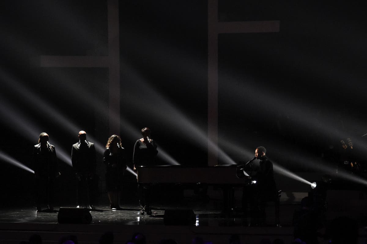 A wide shot of John Legend's touching tribute at the "Aretha! A Grammy Celebration For The Queen Of Soul" concert. (Richard Shotwell/Invision/AP)