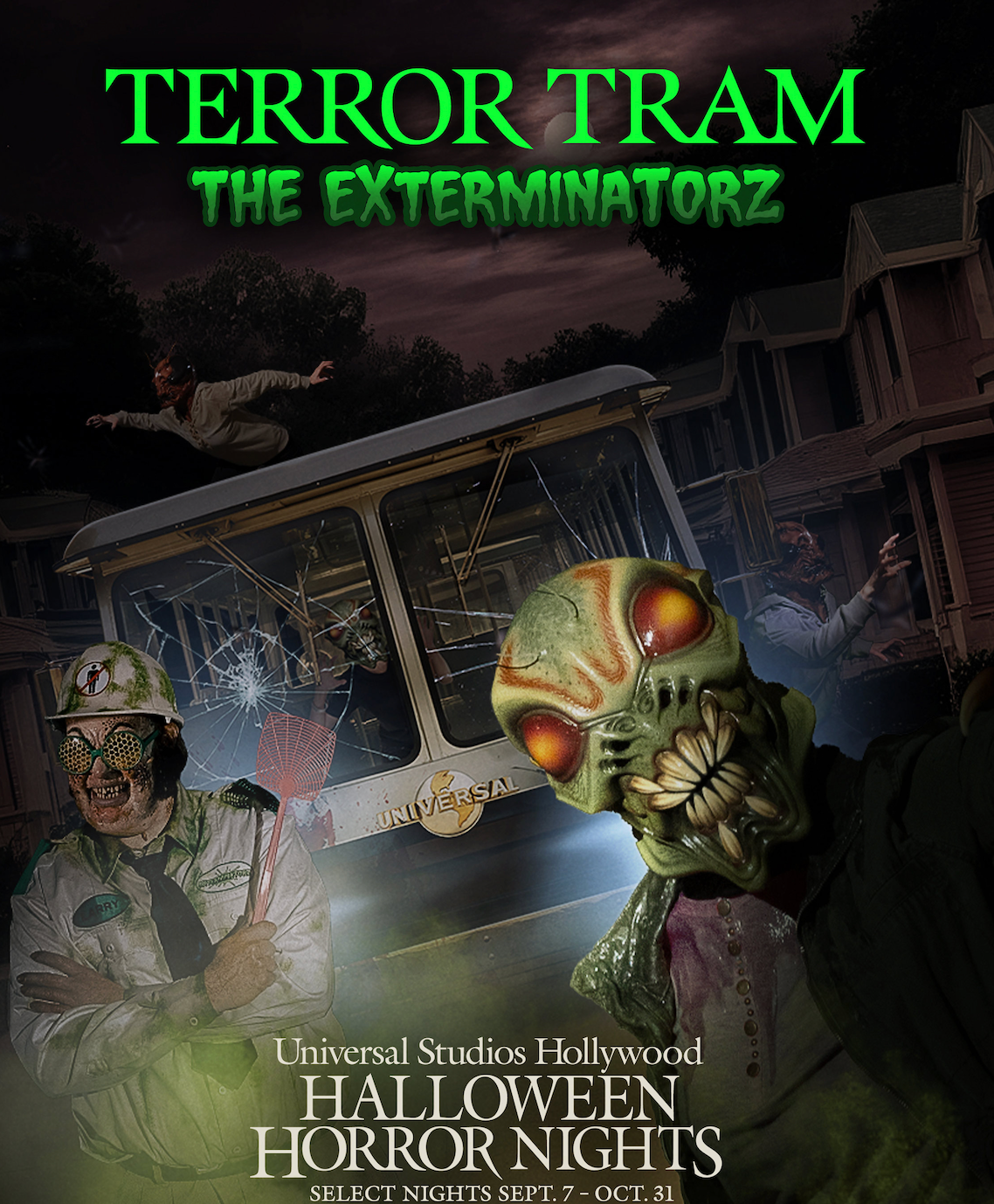 There are eight haunted houses and Universal Studios Hollywood’s exclusive and notorious "Terror Tram." The “Terror Tram…The Exterminatorz” will petrify guests starting Thursday, September 7 and running select nights through October 31.