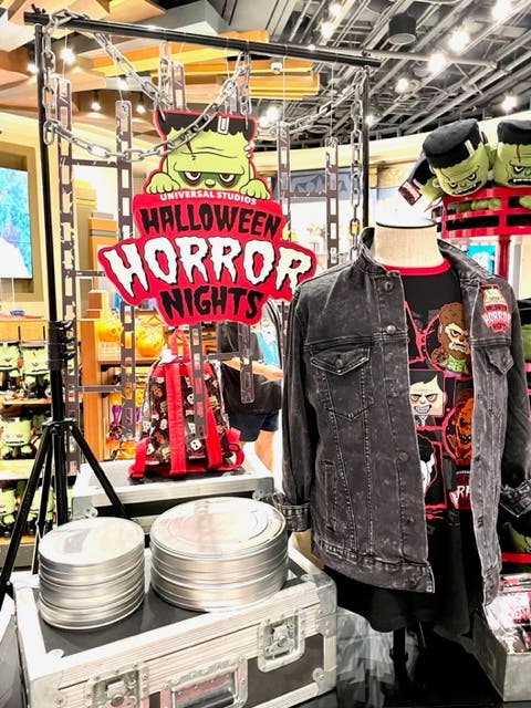 Horror fans looking to commemorate their Halloween Horror Nights experience can find a selection of merchandised themed to this year’s houses, including t-shirts, hoodies, mugs and more.