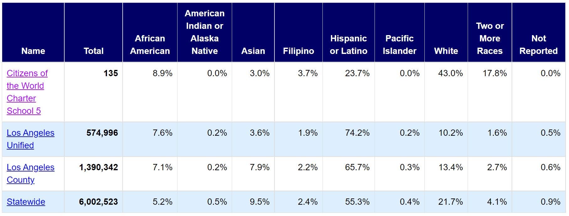 The Citizens of the World chain of charter schools describes itself as being committed to “socio-economic, cultural and racial diversity.” They claim to be “the first national school network with a commitment to economic and racial diversity”. But just how well does this school live up to these lofty goals?
