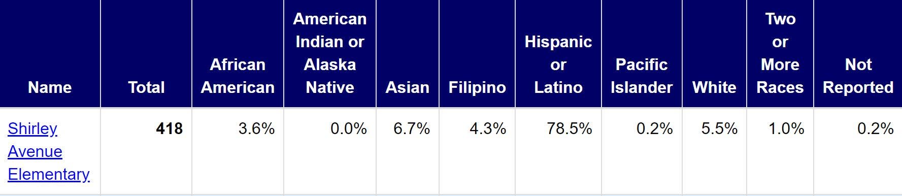 To experience the promised diversity, the students at Citizens of the World only have to look across the schoolyard. To open this latest iteration of the Citizens of the World franchise, space had to be given up by Shirley Avenue Elementary School. The CDE database shows that only 5.5% of the students at this public school are white. Like much of the LAUSD, about three-quarters are Hispanic or Latino.