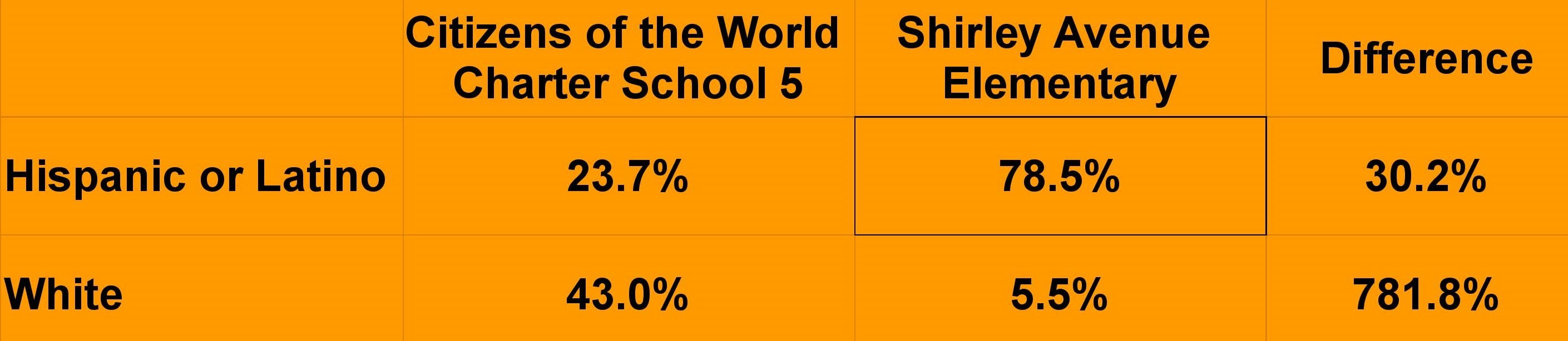 Not only does the student body of Citizens of the World West Valley not reflect the neighborhood where it is located, but the charter school is also harming the students whose parents have chosen to send them to their neighborhood public school. Contrary to the publicly funded private school’s claims, the rooms that it occupies were not empty but used to provide vital services for students with special education needs, academic enrichment, and community support. COTW has told its parents that they “saved” Shirley by moving onto the campus, but they actually diminished the delivery of vital services that were valued by the community.