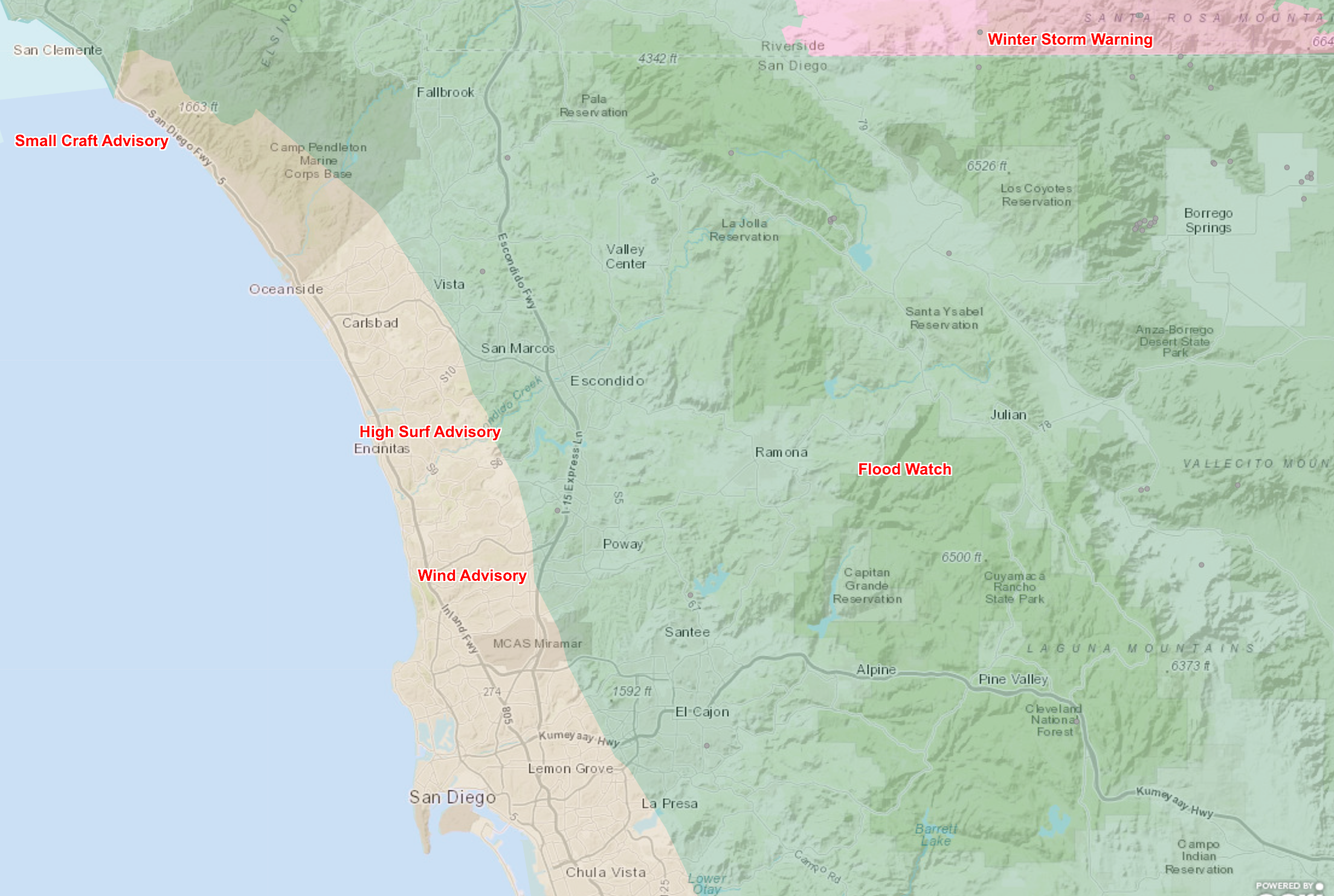 Widespread flooding is expected along with historic levels of rain and dangerous wind gusts. Southern California is under flood watch and wind advisories, and winter weather warnings are in effect in the mountains. The National Weather Service is also warning of the potential for water spouts and small tornadoes, calling the storm a "dangerous system with major risks to life and property."