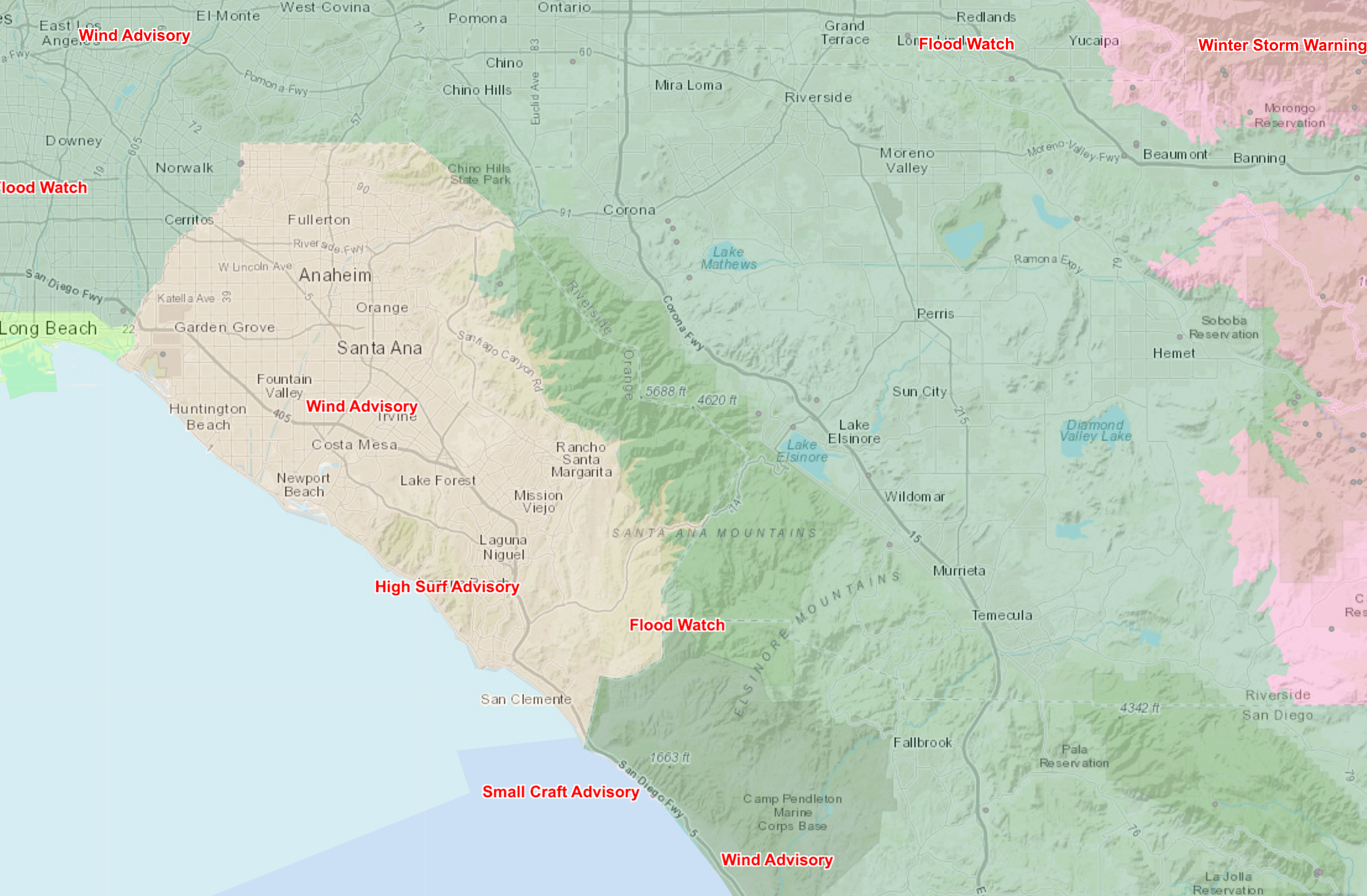 Of major concern are the homeless communities and encampments along the flood basins and rivers that will swiftly turn into raging rivers. According to the California Governor's Office of Emergency Services, fire departments in Los Angeles, Orange, Riverside and San Diego counties have emergency rescue personnel prepositioned for rescues.
