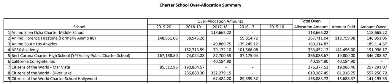 Contributing to this ill-will is the fact that COW consistently takes more space than it needs. While claiming that its “schools are in strong demand” and that they have “more interest than space”, each of their three Los Angeles campuses had fewer students than they projected in at least one of the past four years. The LAUSD has tried to recoup their loss by billing the charter $1,052,428.70 for over-allocated space, but as of November 4, 2020, COW has only paid $96,691.58.