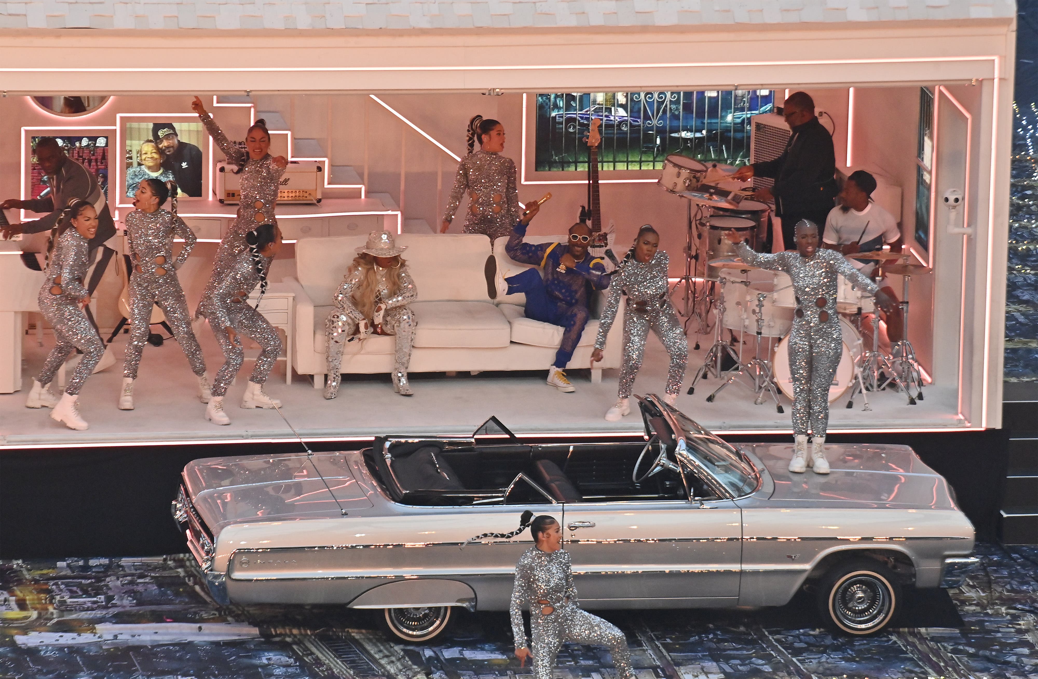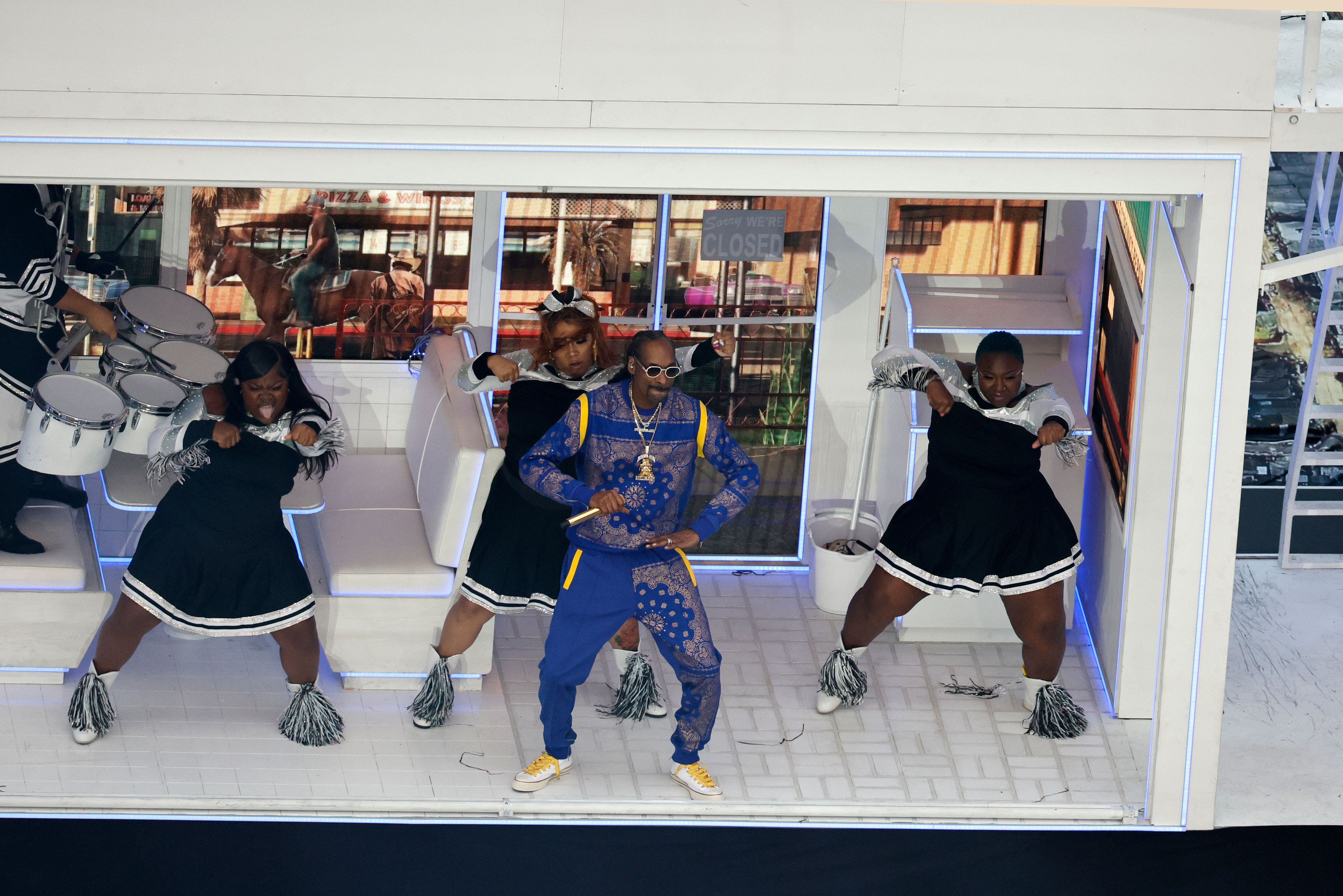 From the costumes and sets to a surprise performance by 50 Cent, check out the best photos from the Super Bowl 2022 halftime show starring Dr. Dre, Eminem, Snoop Dogg, Mary J. Blige and Kendrick Lamar, below: