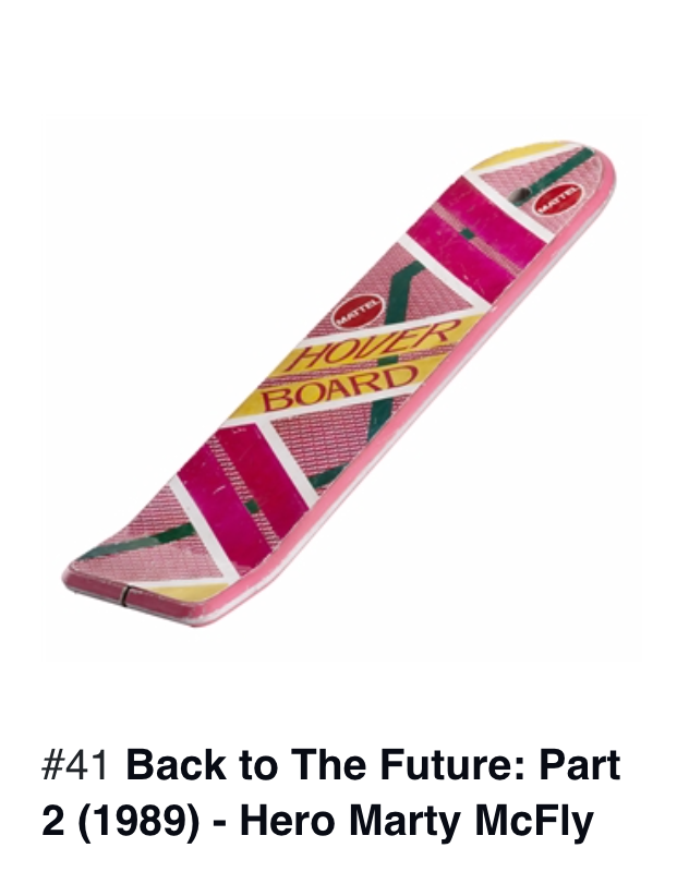 - Michael J. Fox's Hoverboard from Back to the Future – Opening bid $50,000