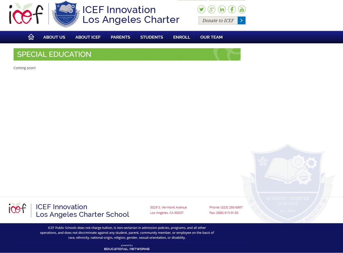 While the CSD did cite a problem of increasing suspension events that reached 3.2% in 2016-2017, it ignored the fact that 7.4% of students with disabilities had suspension events during the same period. While incorporating “elements of restorative justice practice” and “teaching, modeling, and communicating appropriate behavior to all students in the school” may be good plans for decreasing the rate within the general population, it does nothing to address the possibility that children with disabilities may need additional support specific to their circumstances. In fact, it seems that meeting the special education needs of these students may be an afterthought as the Special Education page for the school is listed as “coming soon!” even as the CSD urges the Board to vote for renewal.