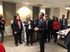 Mayor Garcetti was on hand to kick off the HNTB-hosted campaign event at its downtown Los Angeles office where employees and small business partners collected items, including bedding, kitchen-ware, personal hygiene items, cleaning supplies, and welcome home messages for the recipients, then assembled the baskets.