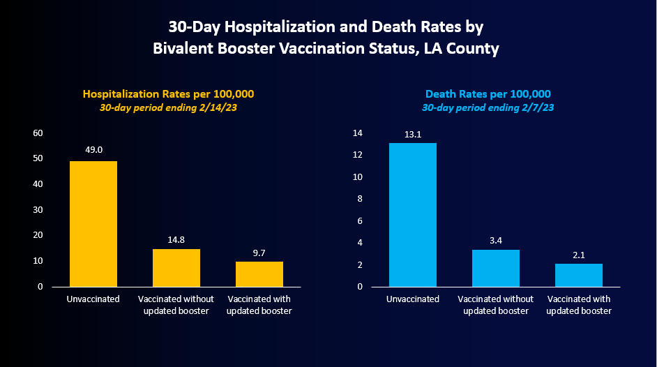 New data shows that county residents who were vaccinated – but had not received the most recent bivalent booster – were 1.5 times more likely to be hospitalized compared to those who had received the booster during the 30-day period ending Feb. 14.