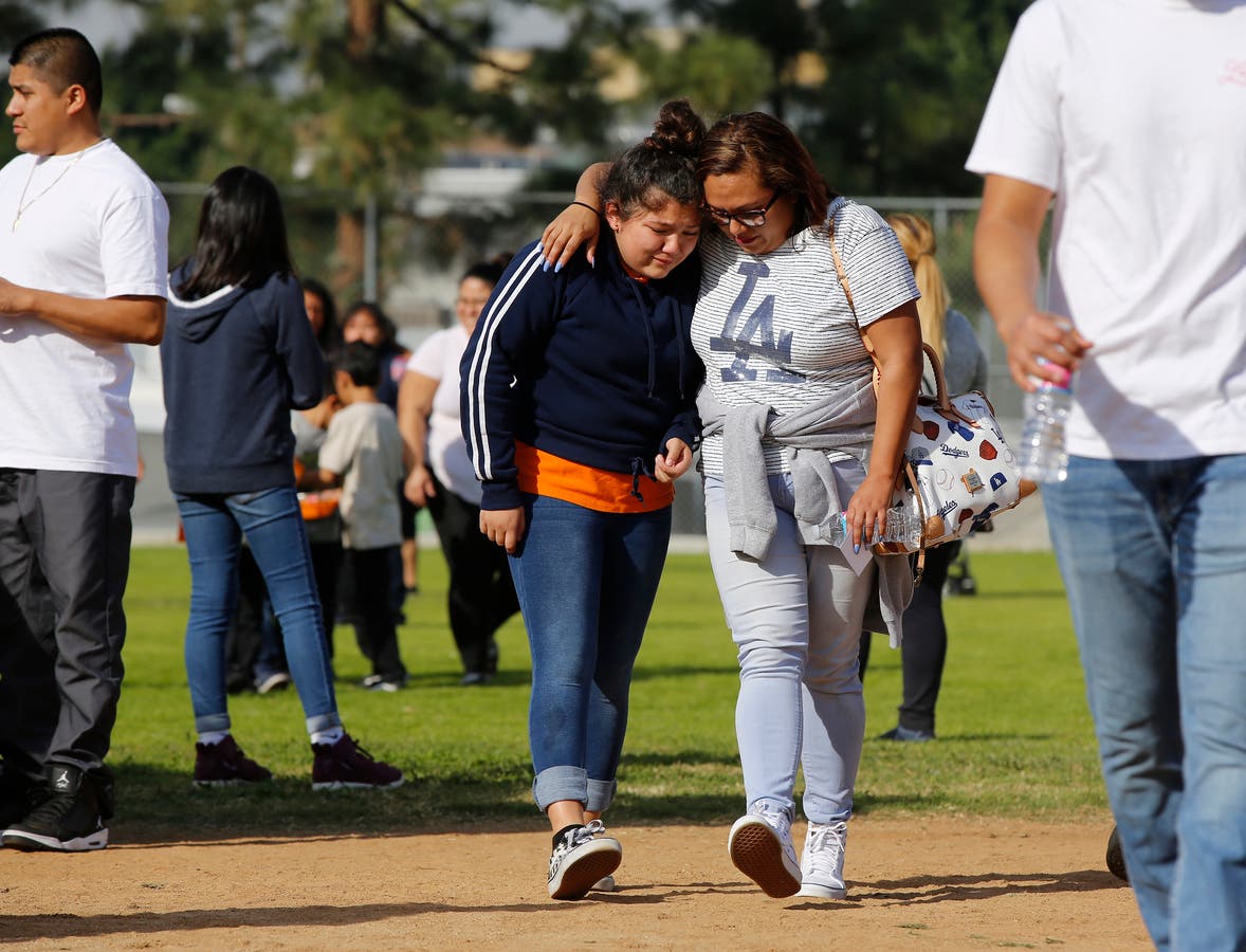 Patch Staffer Paige Austin and City News Service contributed to this report. Photo: Parents reunite with their children at the Salvador B. Castro Middle School near downtown Los Angeles Thursday, Feb. 1, 2018. A girl opened fire Thursday in a middle school classroom on Thursday, authorities said. (AP Photo/Damian Dovarganes)
