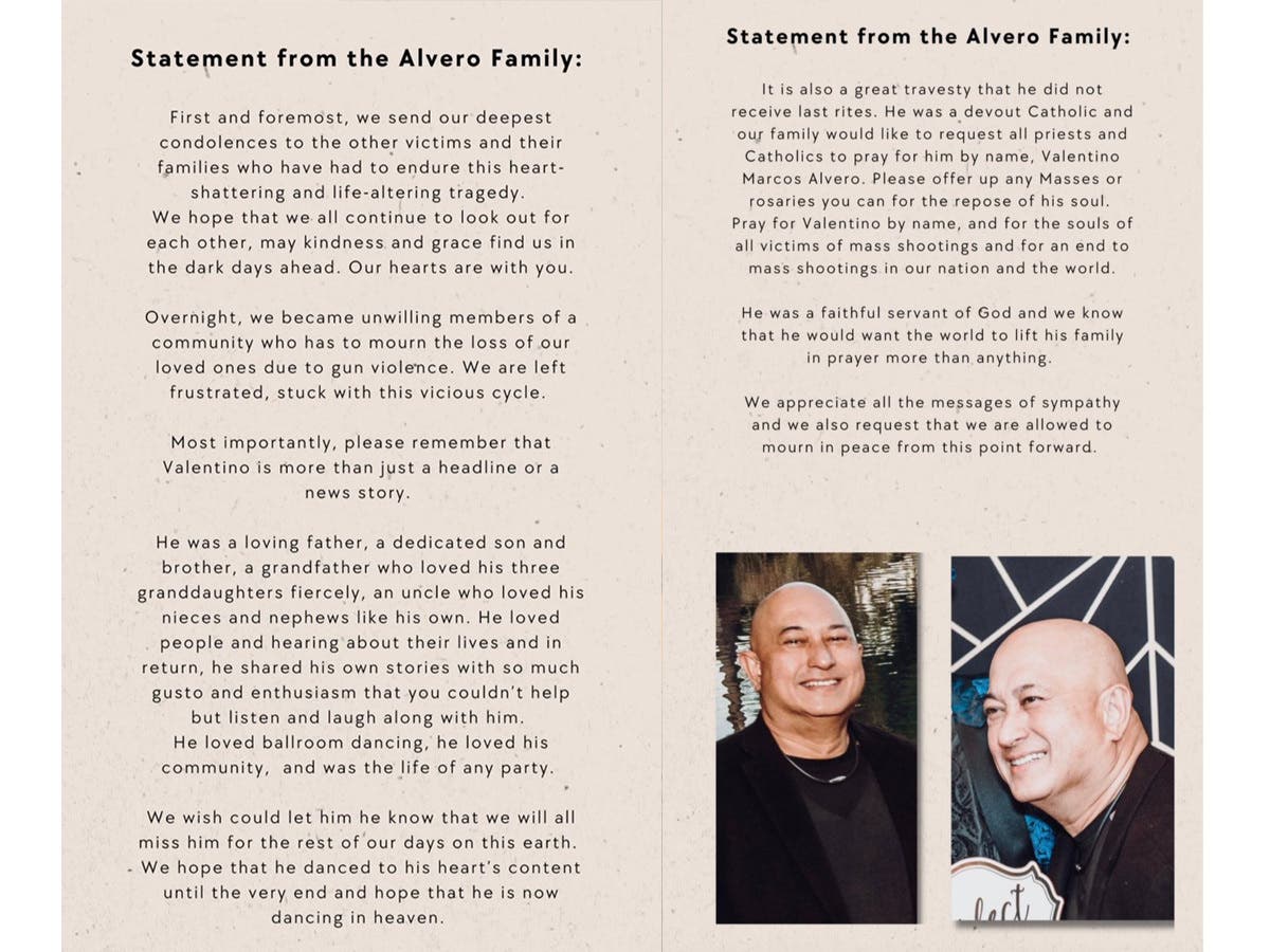 Alvero fiercely loved his three granddaughters, as well as his nieces and nephews, his family said. They asked priests and Catholics to pray for him by name, noting he was not able to receive last rites.