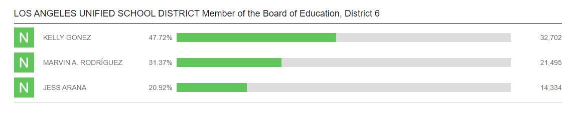 By all measures, teacher and parent Marvin Rodriguez should have been crushed during the primary election. After all, he was outspent by over 66:1 and the incumbent in the race, Kelly Gonez, was endorsed by both the teachers’ union, UTLA, and the charter school industry. Still, Rodriguez managed to secure 31.37% of the vote, which was good enough for a second-place finish. Since Gonez failed to earn more than 50% of the vote, she will face Rodriguez in a runoff on November 8, 2022.