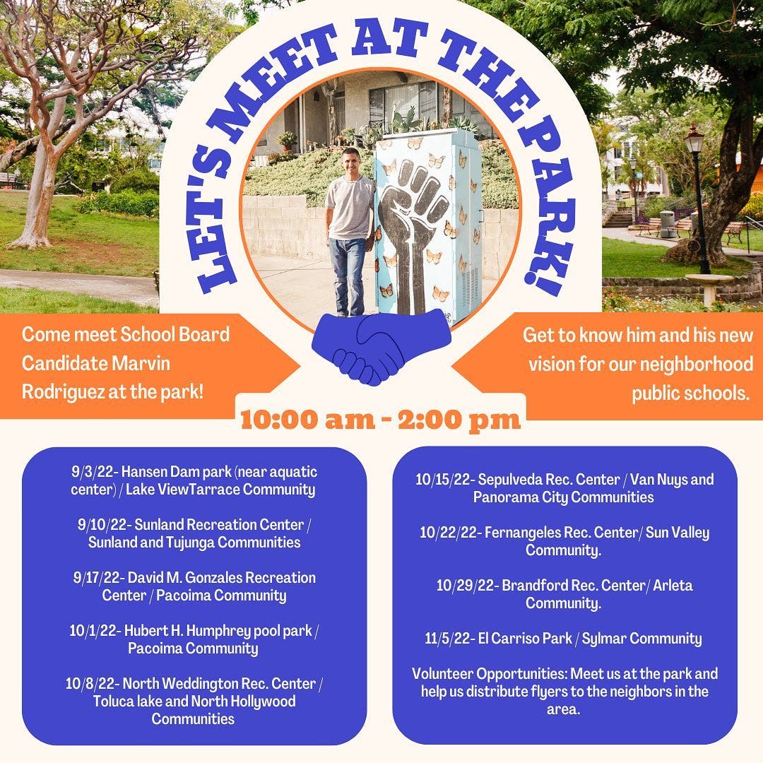 In the following weeks, you can meet Rodriguez and discuss a new vision for our neighborhood public schools at the following locations between 10:00 AM and 2:00 PM: