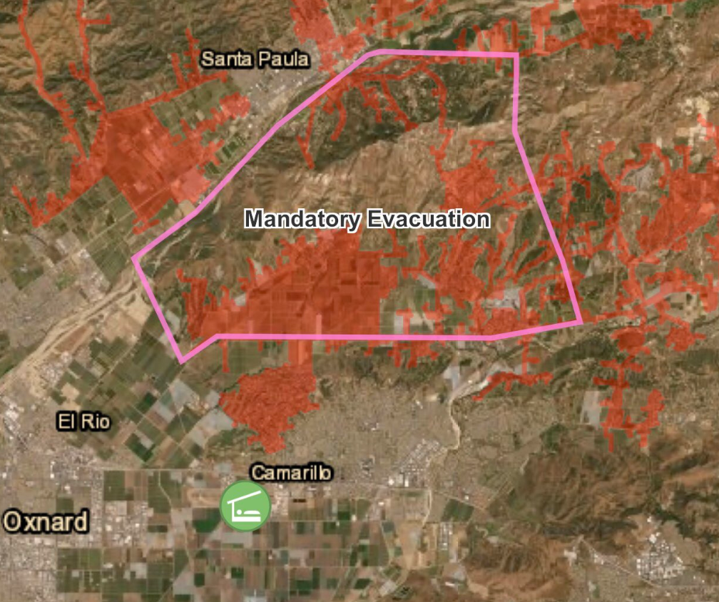 The Maria Fire's mandatory evacuation boundaries include South Mountain Road to the north and Highway 118 to the south, Los Angeles Avenue to the West and Balcom County Road to the east. In Santa Paula, evacuation orders include homes south of the 126 Freeway, east of Campanula Avenue, west of South Briggs Road and north of Santa Clara River.