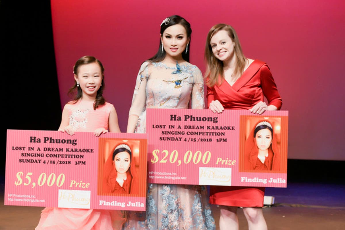 Ha Phuong actively helps talented singers and others interested in a career in the entertainment industry. On Sunday, April 15 Ha Phuong held a karaoke style competition at the St. Jean Baptise Theatre, featuring a top prize of $20,000 for the singer with the best rendition of “Lost in a Dream;” the hauntingly beautiful theme song of her upcoming motion picture, Finding Julia, in which Ha Phuong plays the title role. The film will debut in five cities, including New York, in September 2018. When Ha Phuong announced the winner, it was Jen Fellman.