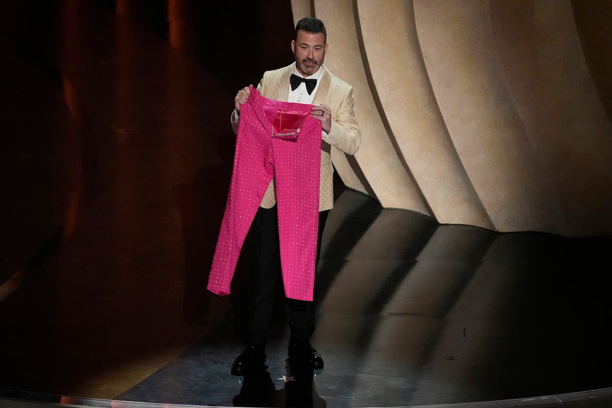 Host Jimmy Kimmel speaks during the Oscars on Sunday, March 10, 2024, at the Dolby Theatre in Los Angeles. (AP Photo/Chris Pizzello)Ryan Gosling, left, performs the song "I'm Just Ken" from the movie "Barbie" with Slash, right, playing the guitar during the Oscars on Sunday, March 10, 2024, at the Dolby Theatre in Los Angeles. (AP Photo/Chris Pizzello)Ryan Gosling performs the song "I'm Just Ken" from the movie "Barbie" during the Oscars on Sunday, March 10, 2024, at the Dolby Theatre in Los Angeles. (AP Photo/Chris Pizzello)