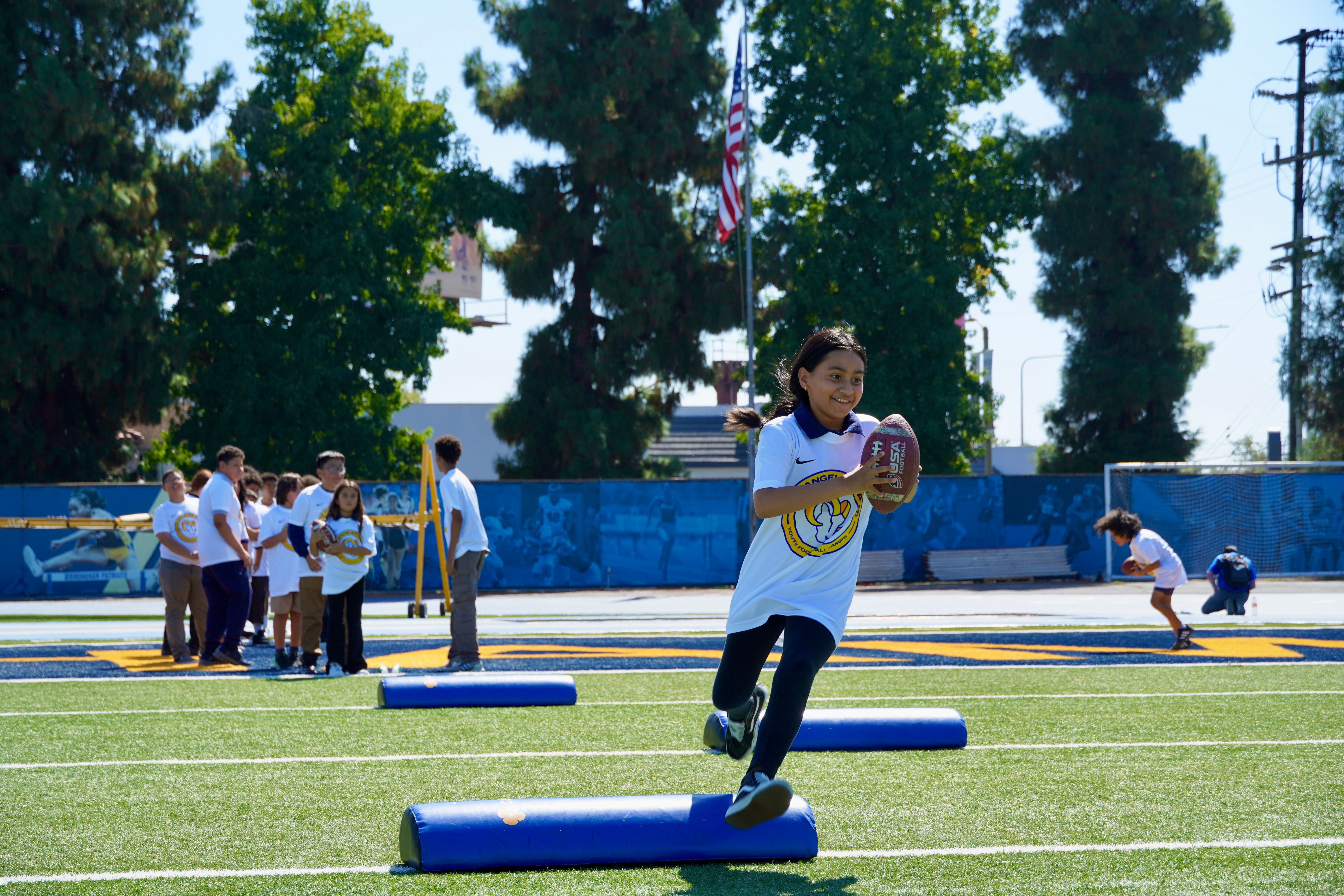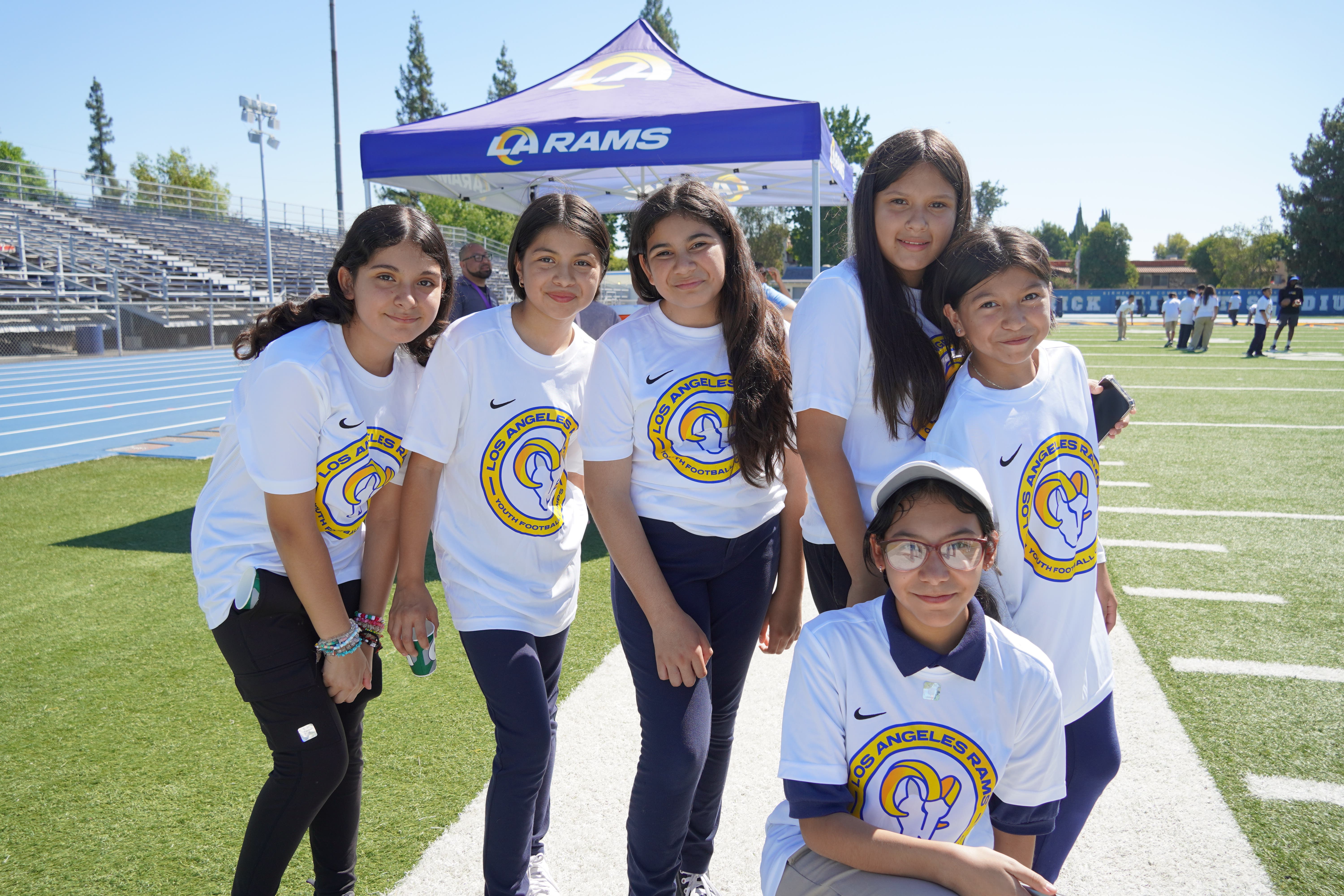 Royal, white, sol and a whole lot of fun came to Magnolia Science Academy-2 Valley (MSA-2), as the Los Angeles Rams hosted a Football Clinic for more than 150 students in grades 6-12 on the school campus, which is located at 17125 Victory Blvd., Van Nuys, CA 91406. The event's goal was to increase play equity by bringing an elite competitive sport to a high-need area with restricted access to sports opportunities and spaces, and inspiring young girls to participate in flag football.