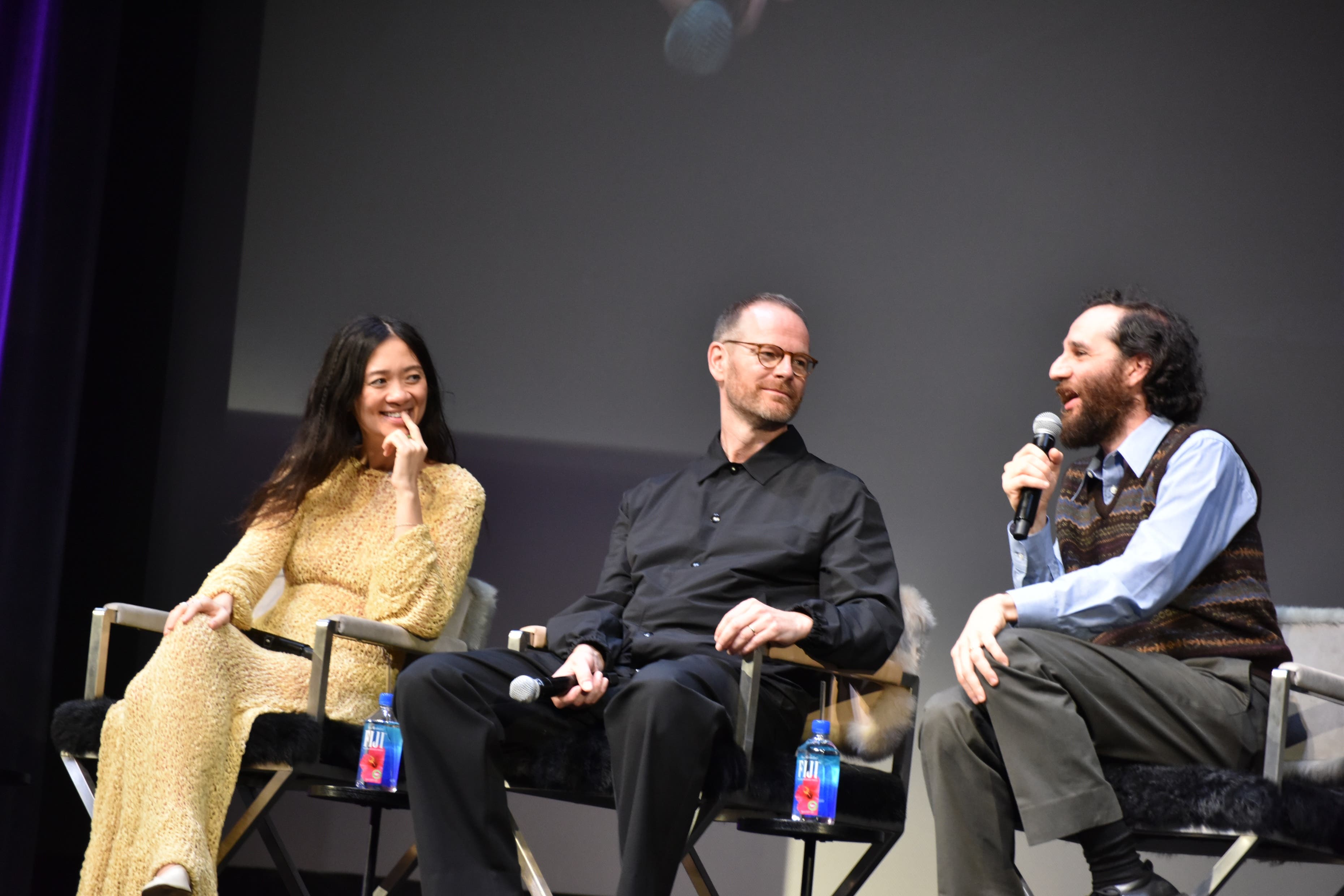 Chloé Zhao, Joachim Trier, Josh Safdie speak onstage at the Outstanding Directors of the Year Award ceremony during the 41st Santa Barbara International Film Festival at The Arlington Theatre on February 10, 2026 in Santa Barbara, California. (Jonathan Shensa/Patch Media)