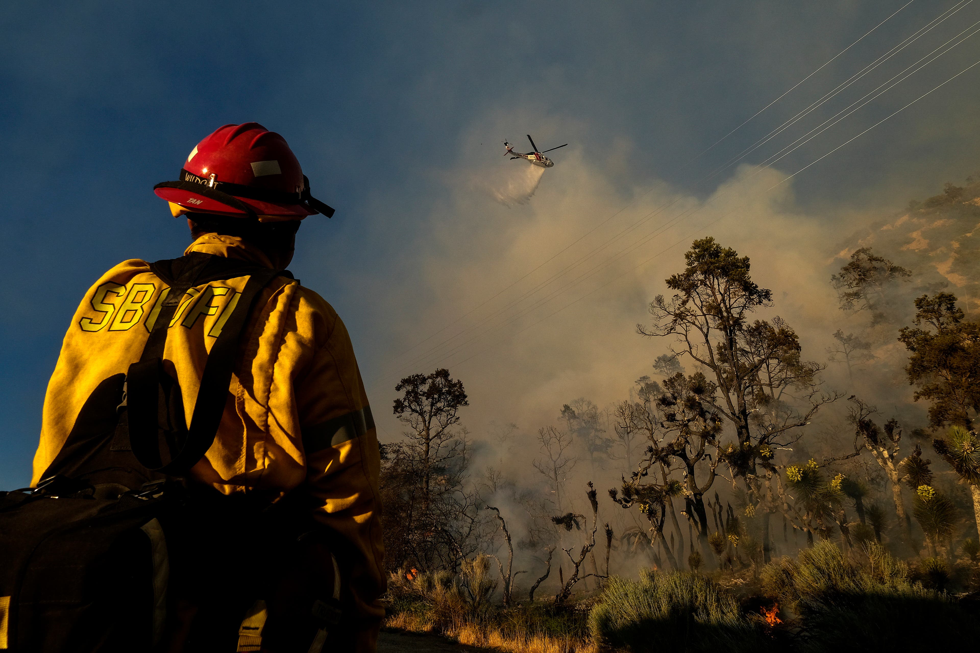 More than 700 firefighters are tackling the blaze and worked through the night, San Bernardino County Fire said. The crews will have to contend with expected winds of 25 mph, according to National Weather Service meteorologist Adam Roser. The terrain is also very steep, Cal Fire PIO Alison Hesterly told the Los Angeles Times. Vegetation in the area is also 40% drier than usual for this date, officials told the Los Angeles Times.