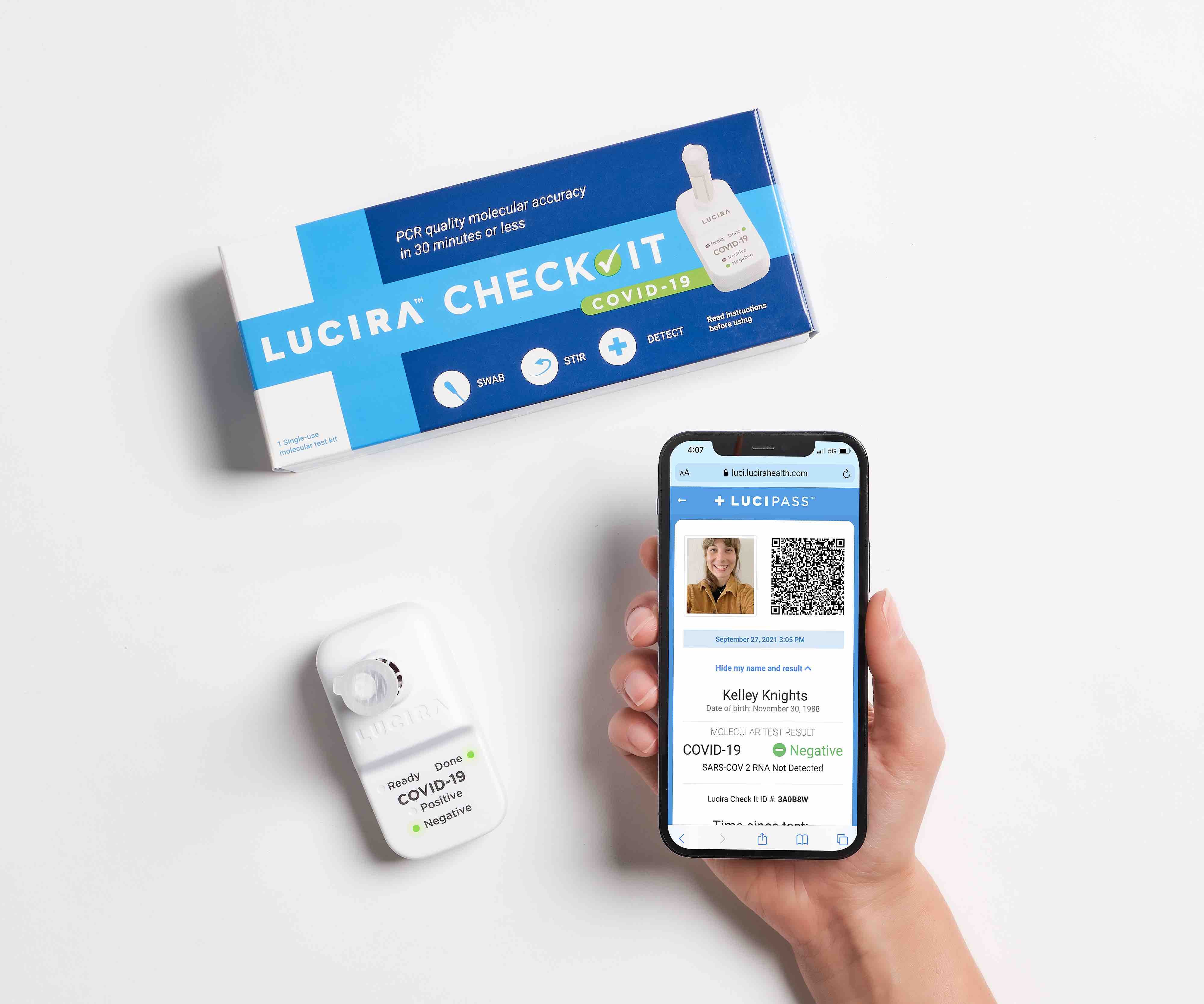 This at home molecular COVID-19 test is authorized by the FDA and gives results within 30 minutes with the accuracy of a lab PCR test. It's also portable so great for travel, $75 at www.Lucirahealth.com.