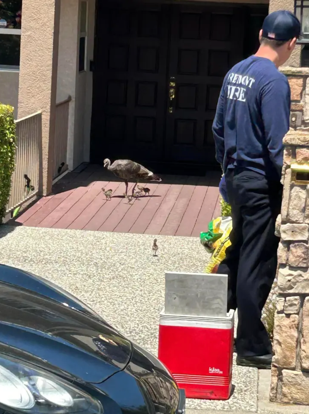 The mama turkey appeared to be in a fowl mood when they were reunited.