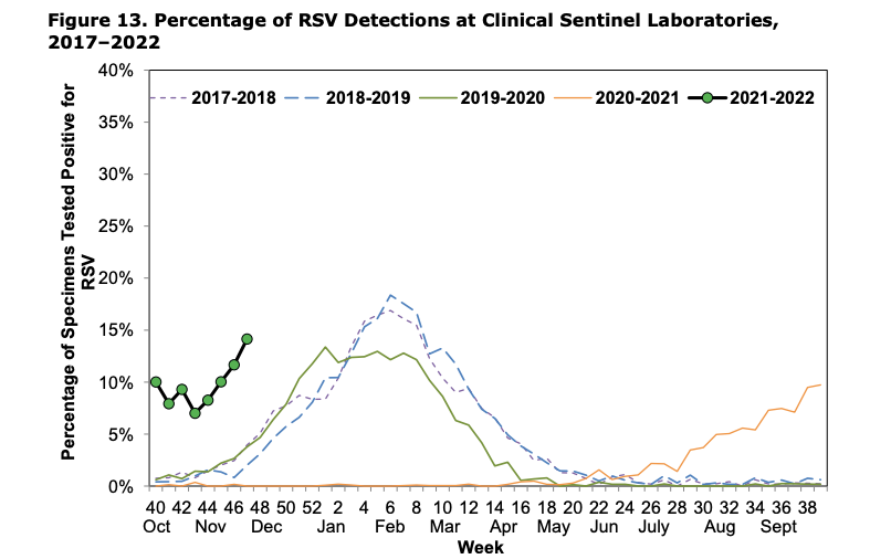 RSV symptoms often mirror coronavirus symptoms, and the virus typically overlaps with flu season. But this year, it began spreading throughout the summer and remained unusually high for November.