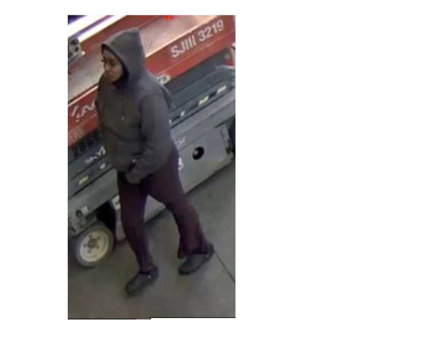 The suspect who grabbed the dog was described as being in her mid 20s. She was last seen wearing a gray hoodie, purple sweatpants and black shoes.