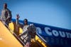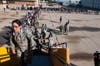 They put on brave faces, fought back tears and held on tight, not knowing when they would hug again. Hundreds of family members gathered this morning to see their loved ones head off to Kuwait.