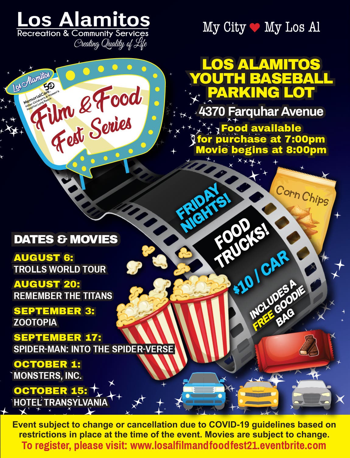 LOS ALAMITOS, CA āThe Los Alamitos Recreation and Community Services Department invites the community to the MemorialCare Miller Childrenās and Womenās Hospital Long Beach Drive-Up Film and Food Fest Series.