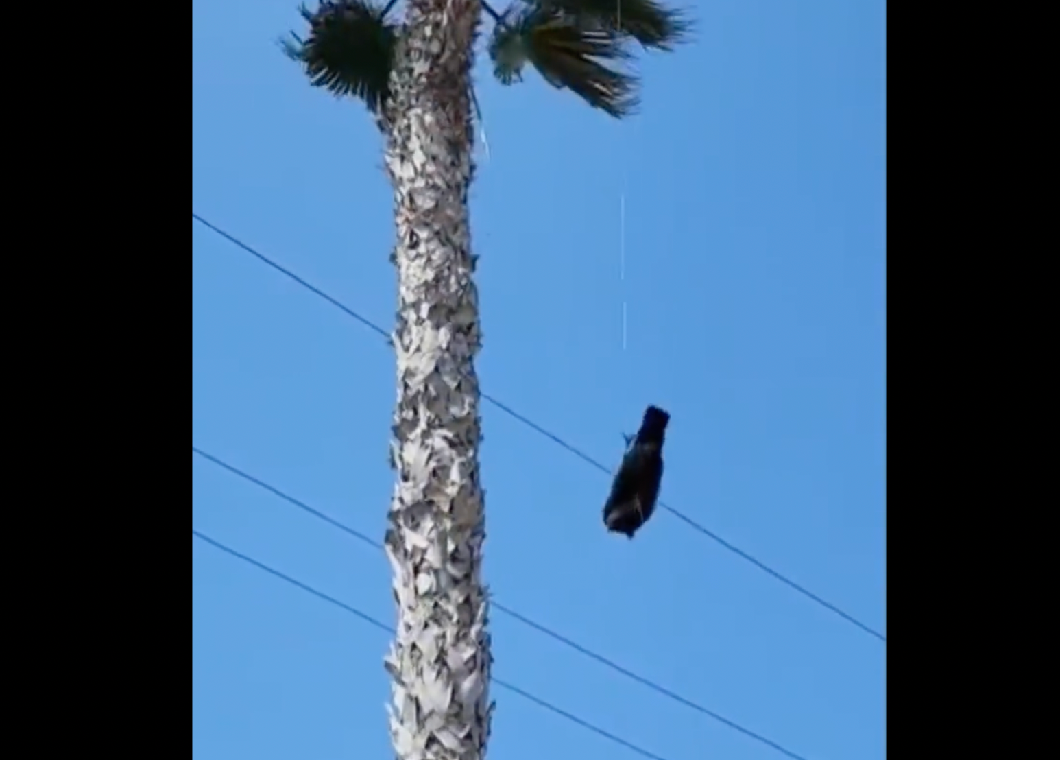 Orange County gave a helping hand to a crow tangled in string and hanging upside down from a palm tree in Seal Beach this week.