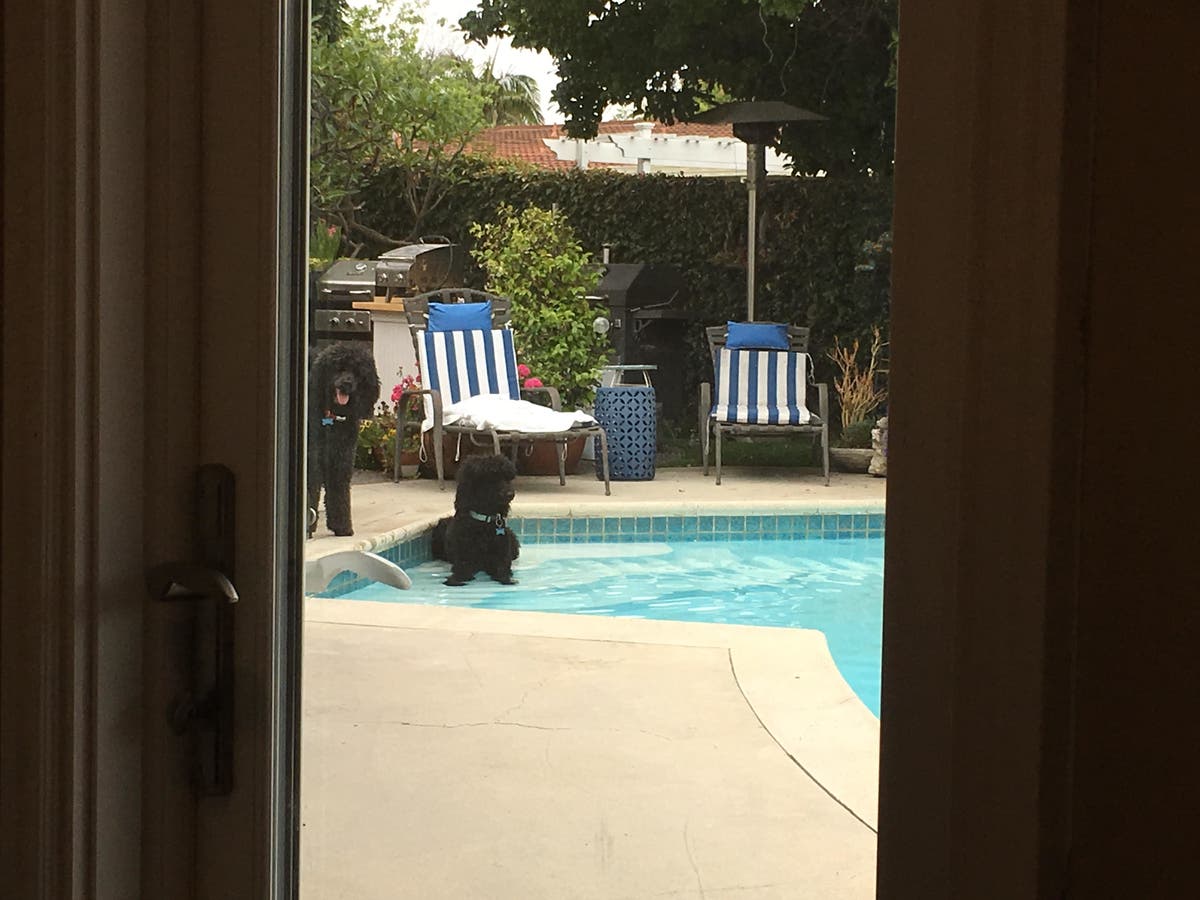 Here, these playful poodles are seen taking a dip on one of Rossmoor's hotter days this summer.