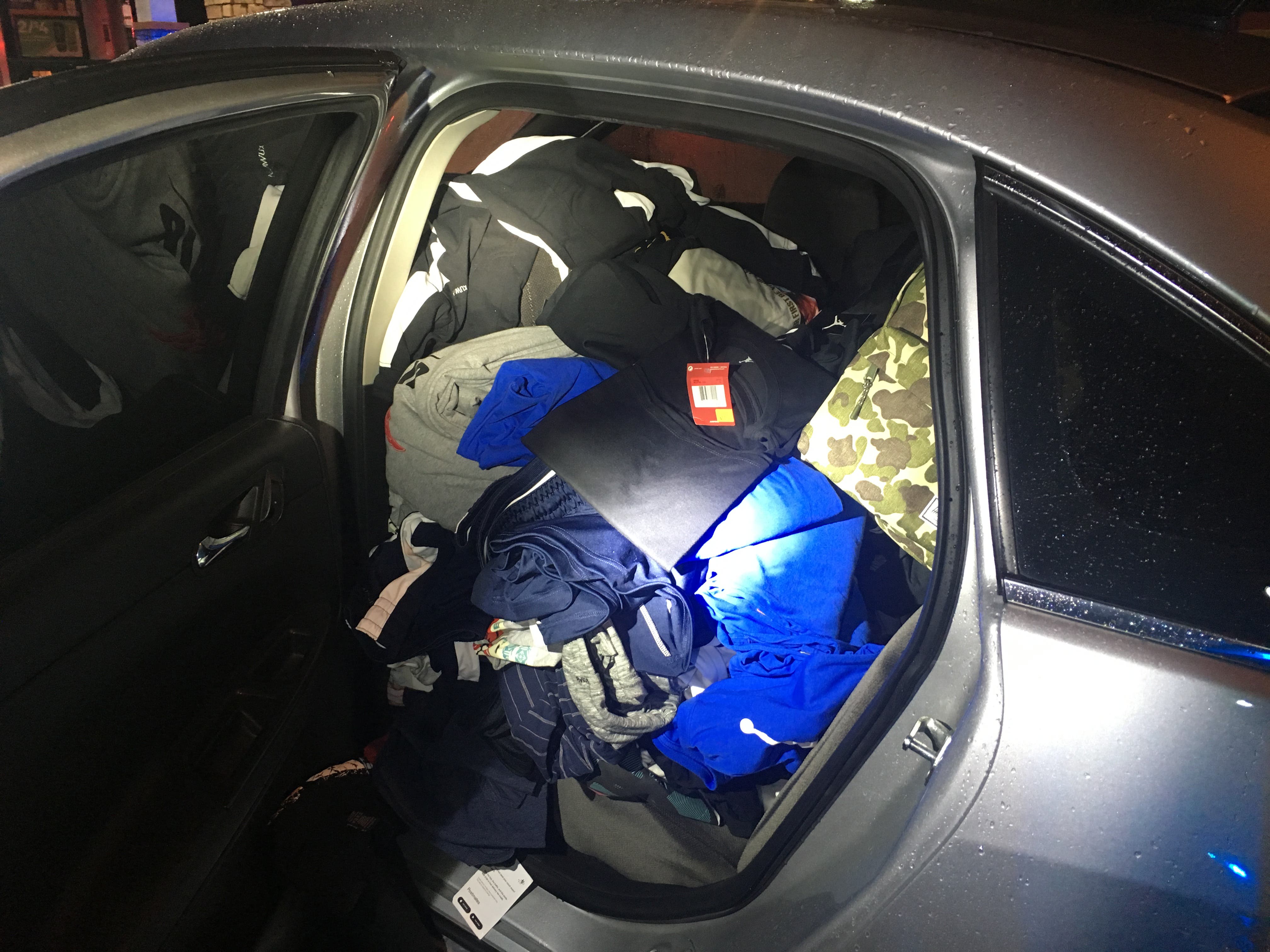 Officers recovered 280 pieces of clothing and accessories worth nearly $14,000 from the vehicle and the items were later returned to the store.