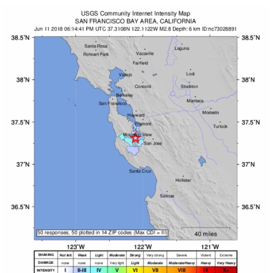 The temblor struck at a depth of about 4 miles and was felt in the nearby communities of Los Altos, Mountain View, Cupertino, San Jose, Palo Alto and Redwood City, as well as beyond in San Francisco, according to responses submitted to the USGS.