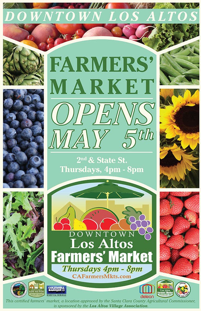 Don't miss the first Los Altos Farmers' Market of the season. Thursday, May 5, 4 PM to 8 PM, State Street, Downtown Los Altos.