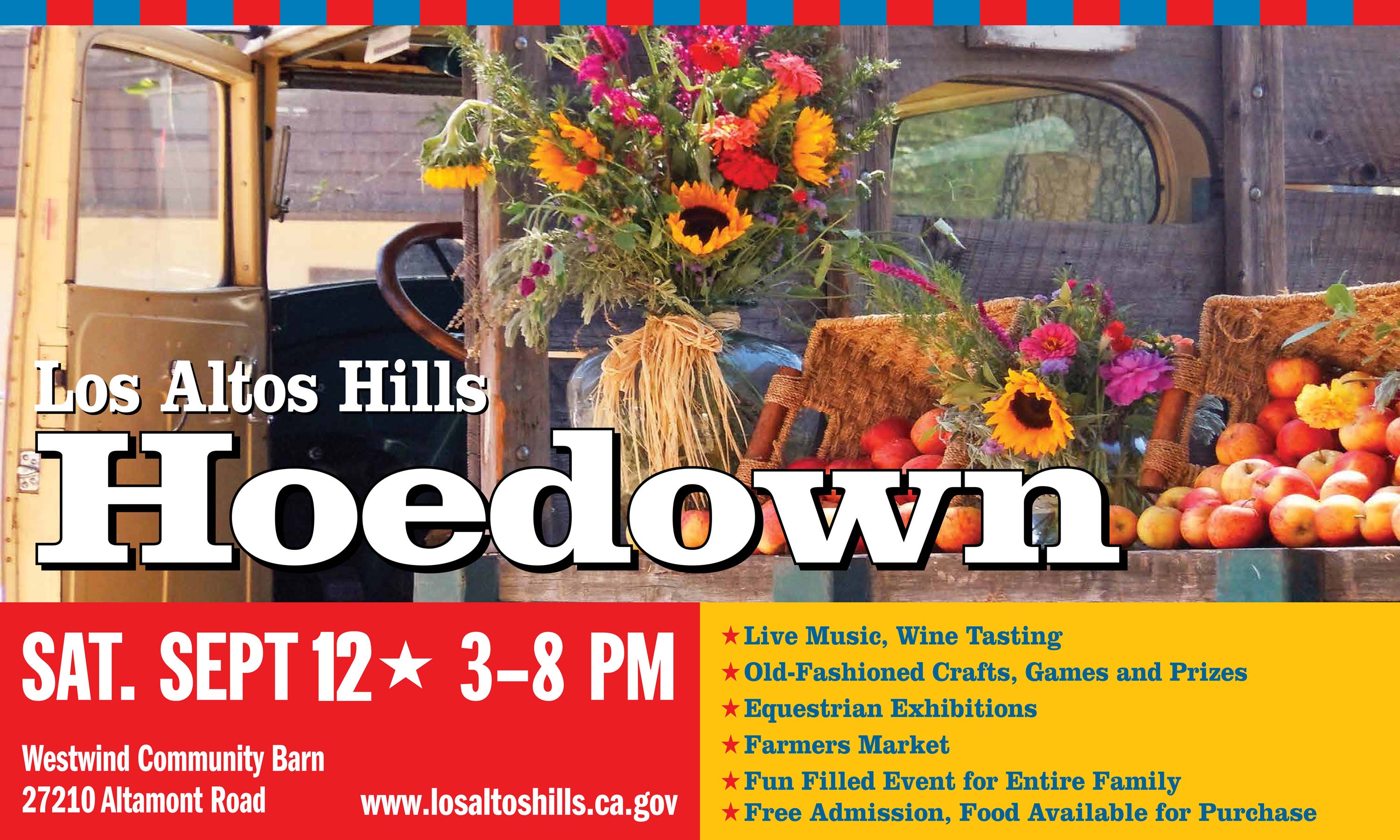 Come one, come all! The annual Los Altos Hills Hoedown will be taking place on Saturday, September 12 from 3:00 to 8:00 pm at Westwind Community Barn.