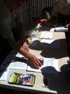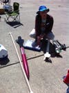 The LUNAR club sets up quite a fantastic area for launching. There were five or six launch pad areas each with six or so launch pads. The “launch master” and the LUNAR team carefully control access to these to make launching safe and easy. Rockets are checked by the LUNAR team as the launch cards are turned in—and a launch pad assigned. Then, adults, children and parents wait for their names to be called by the MC so that they can either watch their rocket life off from a distance—or come to the control console and press the launch button themselves!