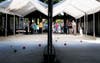 Bocce ball is one of the many activities at the Los Altos Senior Center that brings in weekly regulars. Four games are played every week—two groups of regulars play on Mondays and Wednesdays or Tuesdays and Thursdays. They have met for the past six years to play. The seniors draw cards to determine the teams of three.