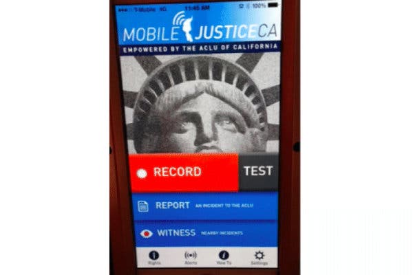 Videos recorded using the Mobile Justice CA cellphone app can be sent to a local ACLU office as a way to report possible civil rights violations by police officers.
